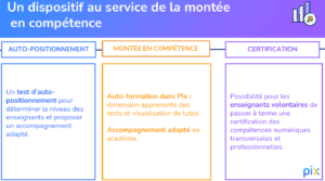 Afin de vous accompagner au mieux, nous mettons à votre disposition un parcours d'auto-positionnement et d’entrainement en ligne pour développer vos compétences numériques professionnelles via un parcours Pix spécifique au métier d’enseignant dans le 1er degré.